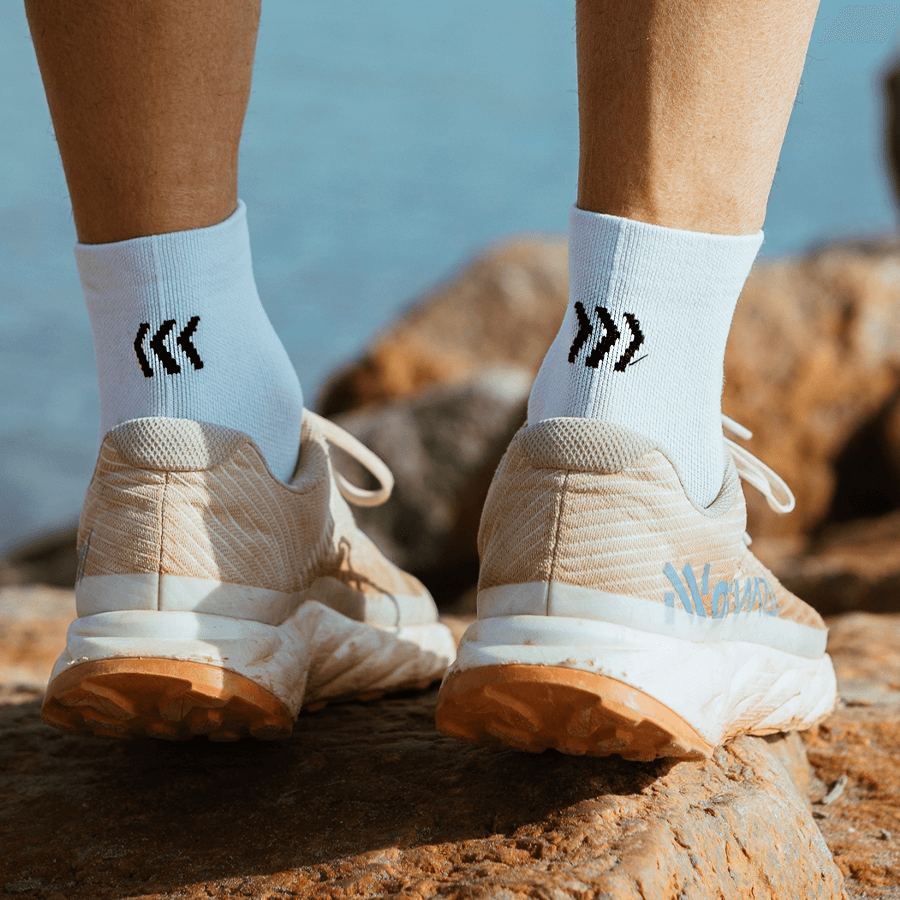 Im Gegensatz zu anderen Sportsocken sind Podoks mit patentierten biomechanischen Elementen ausgestattet, die die Ausrichtung verbessern und die Belastung der Plantarfaszie reduzieren. Das elastische Band im Innengewölbe sorgt für Halt und Stabilisierung, während spezielle Polsterungen an Ferse und Mittelfuß die Biomechanik des Schritts abfedern und verbessern. Dadurch reduzieren sie Schmerzen durch Plantarfasziitis um 38 %.